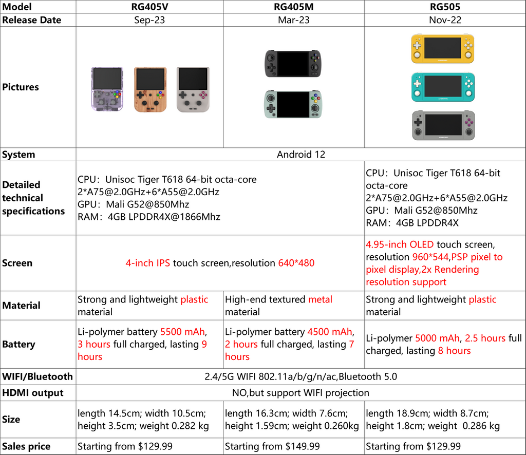 RG505: Ideal for gamers who prioritize a larger and OLED screen. Its sleek design and WIFI projection function make it perfect for both portable and home use.