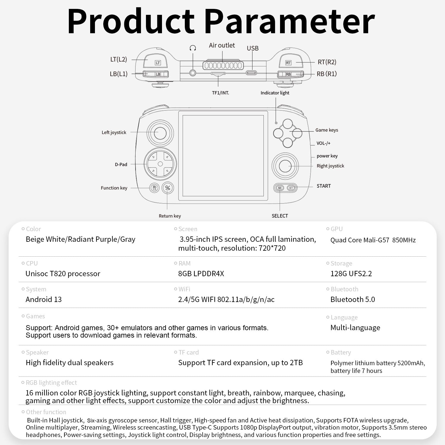 Handheld-Spielekonsole mit Android 13 und RGB-Lichteffekten für ein cooles Spielerlebnis!