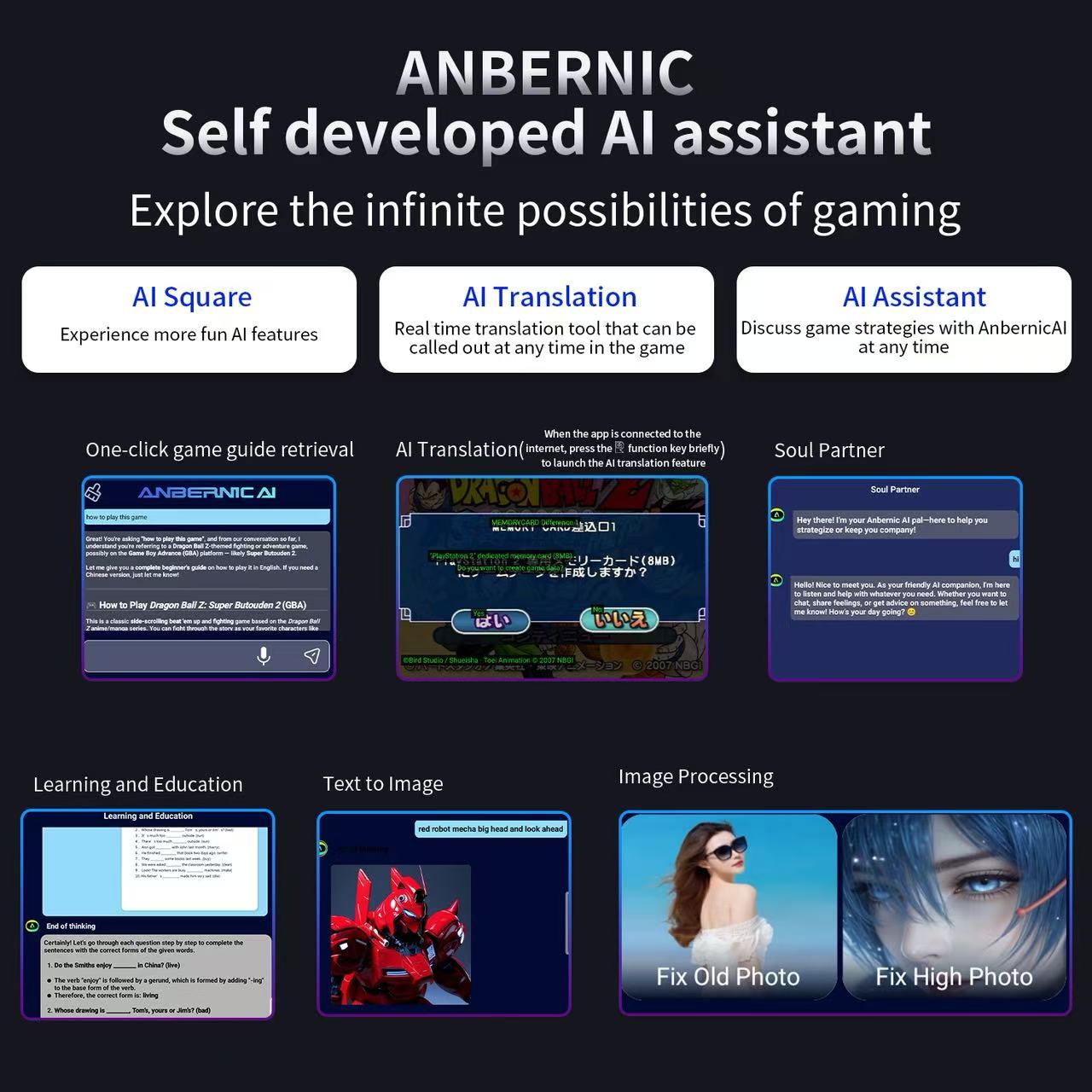 One-click game guide retrieval, real-time translation, intelligent dialogue, text-to-image generation, image processing, and more features.