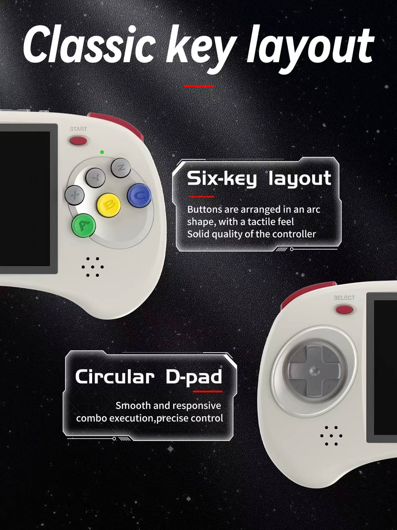User-friendly and easy to navigate.The D-pad and A B C X Y Z buttons are uniquely designed using conductive silicone gel.Silky feel and excellent experience.