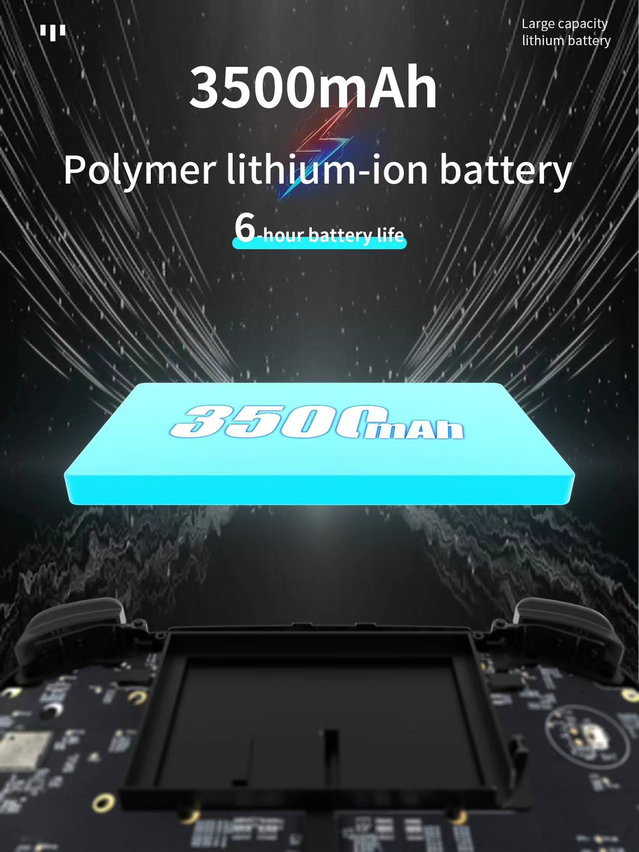 Li-polymer 3500 mAh, lasting 6 hours,Support C2C charger