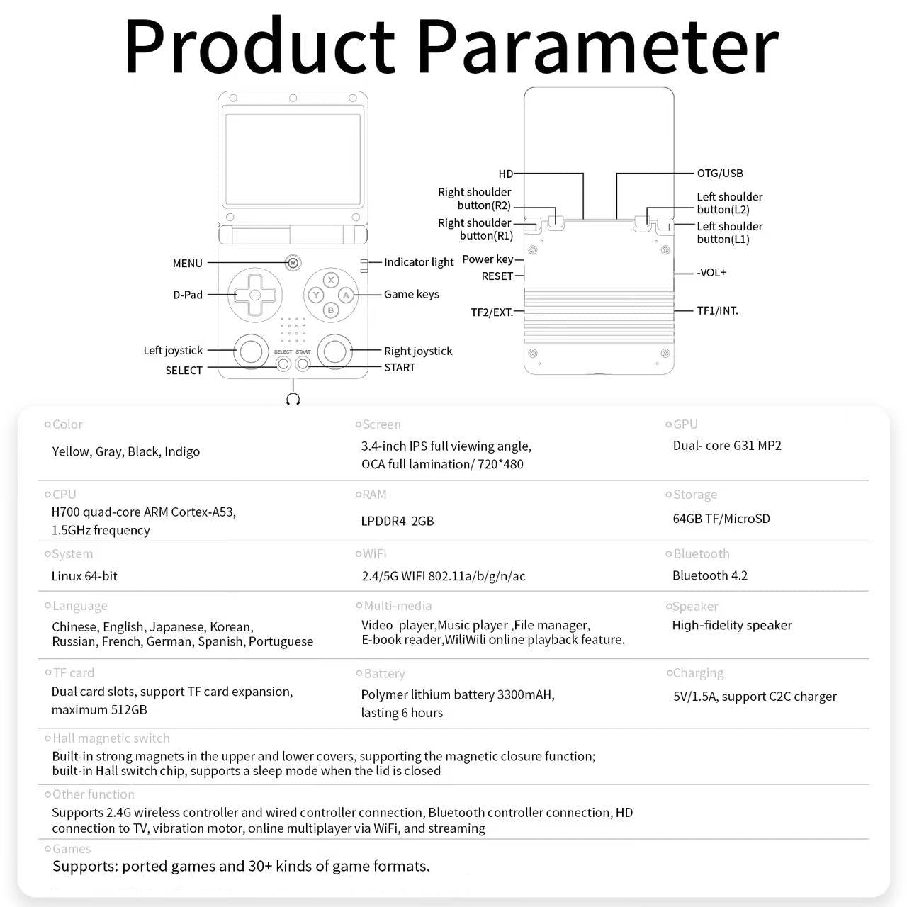 Compact, nostalgic, and powerful — the RG 34XXSP brings classic clamshell gaming to the modern era.