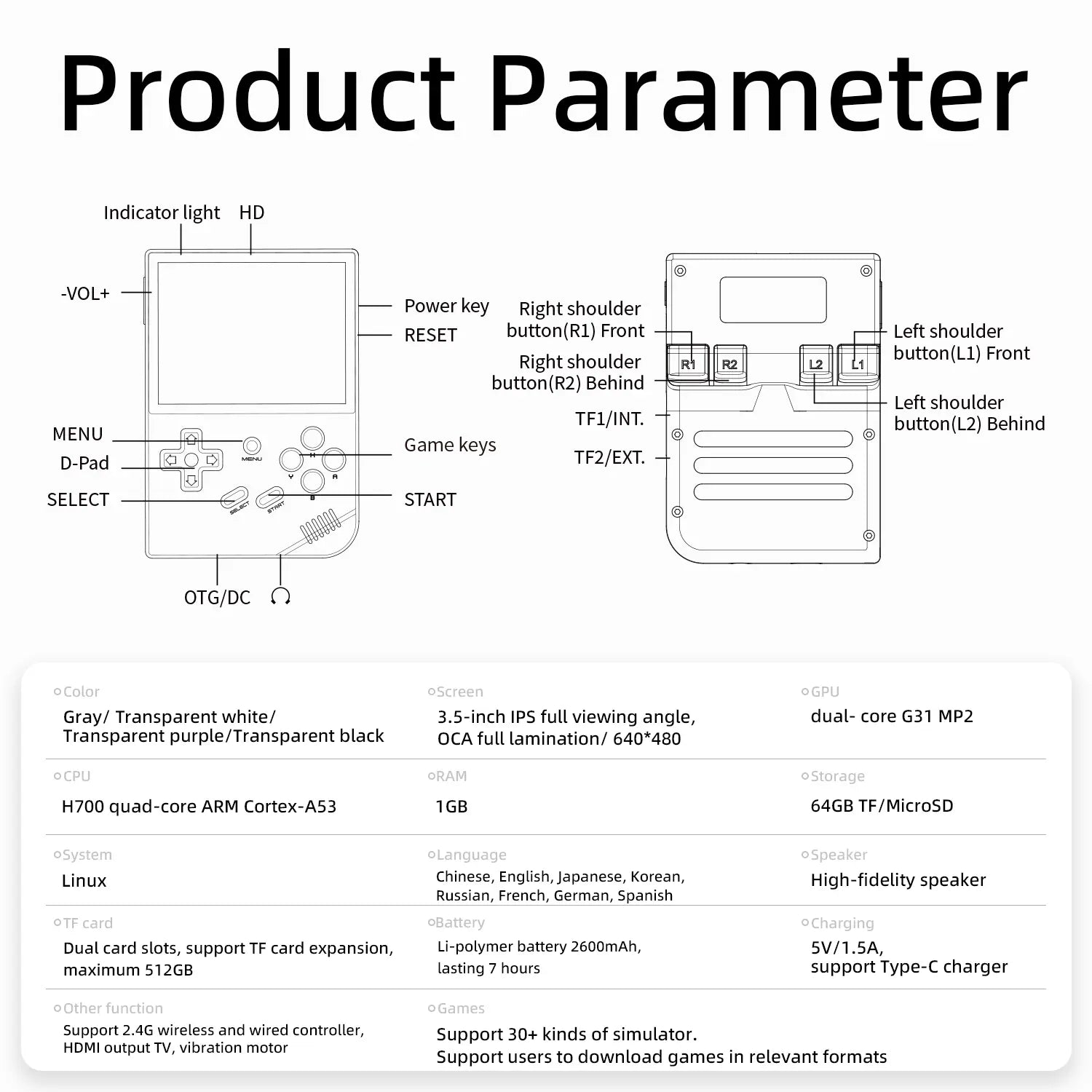 Support 2.4G wireless and wired controller,HD output TV, vibration motor.