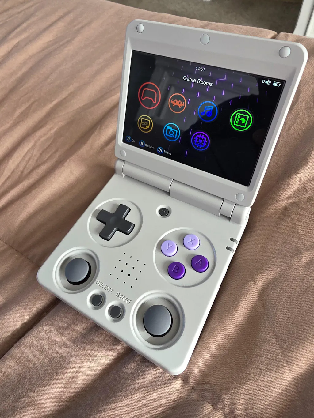 Compact, nostalgic, and powerful — the RG 34XXSP brings classic clamshell gaming to the modern era.