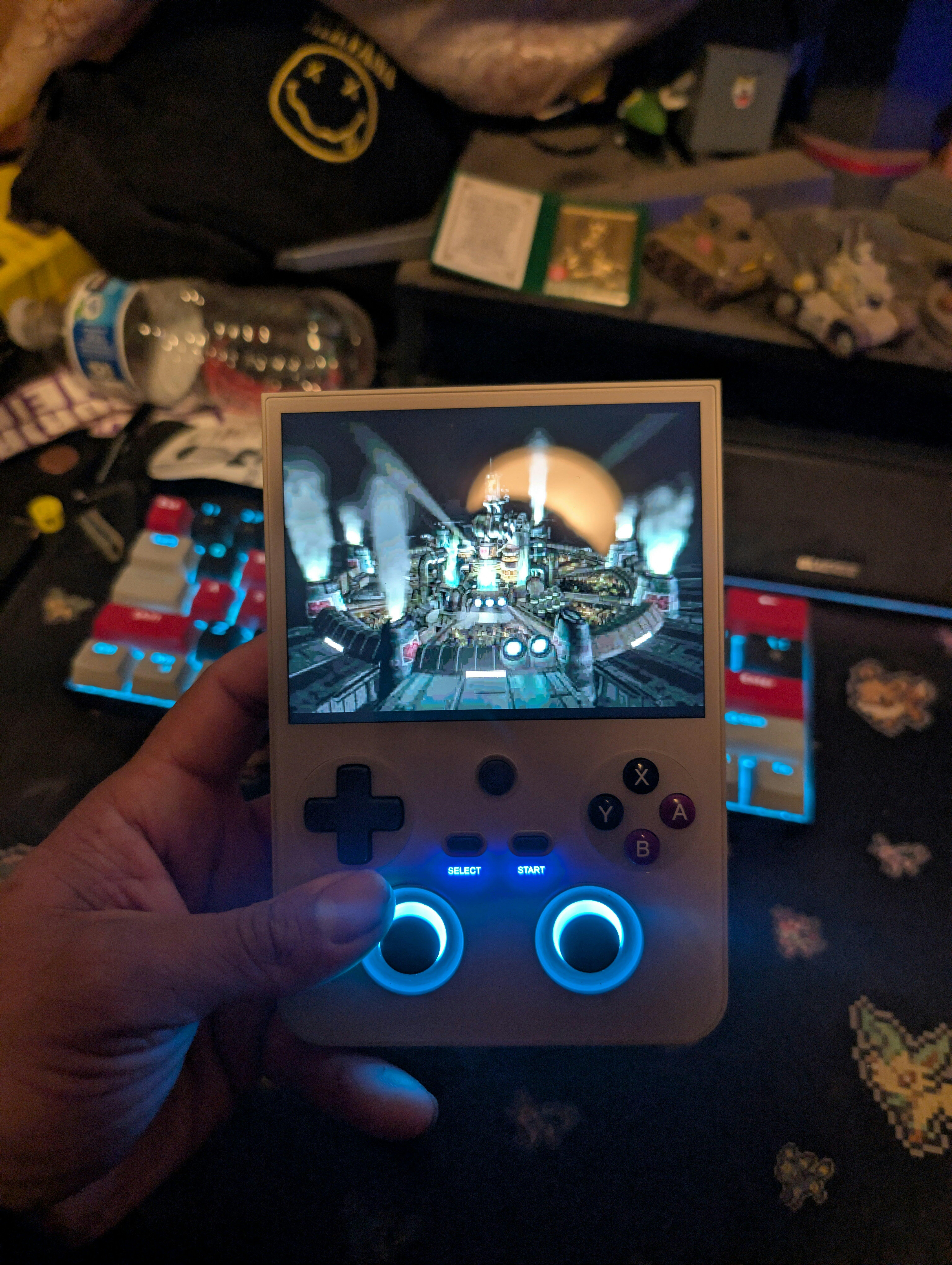 Built-in six-axis gyroscope sensor, Built-in DSP Sound Effects Algorithms, high-speed fan + heat pipe active cooling. Supports FOTA wireless upgrades, online multiplayer, streaming, wireless screen projection, USB Type-C supports 1080p display port output(Supports dual-screen display for NDS and 3DS games), vibration motor, supports 3.5mm stereo audio headphones, energy-saving settings, RGB joystick light control, display brightness, various functional attributes and customizable settings.