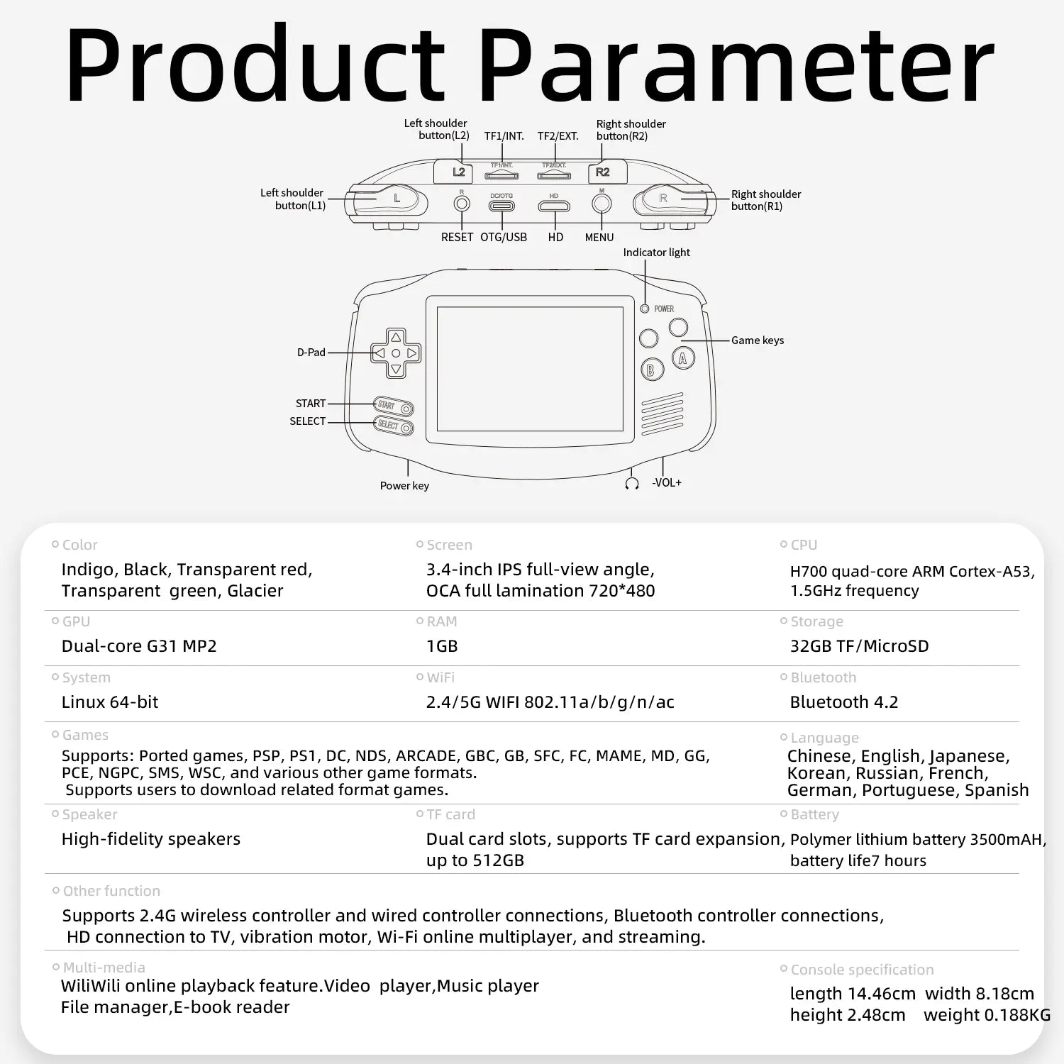 Dual card slots, support TF card expansion, maximum 512GB
