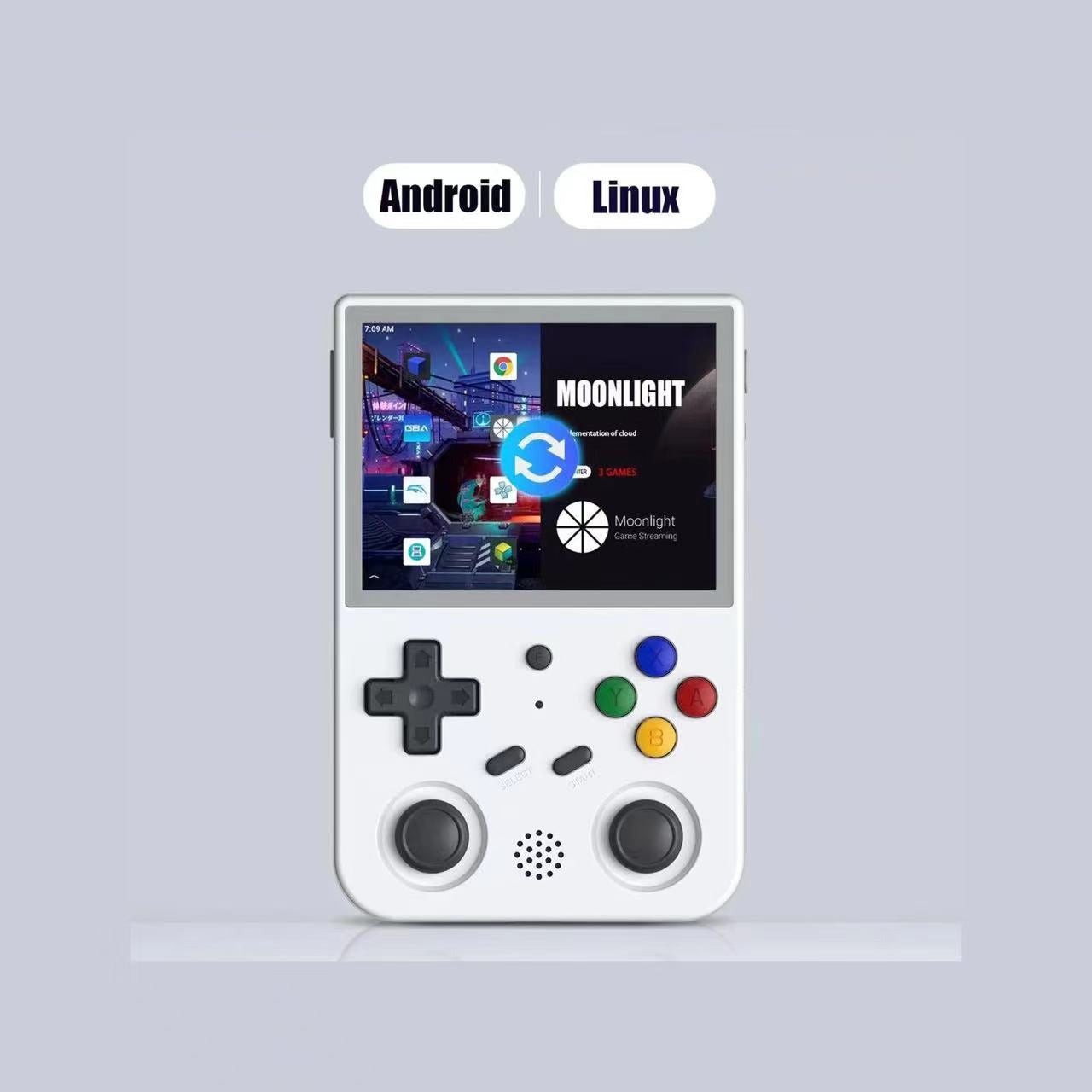 The RG35XX Pro features a compact vertical design, a 3.5-inch laminated IPS screen, and dual joysticks for smooth, precise control.